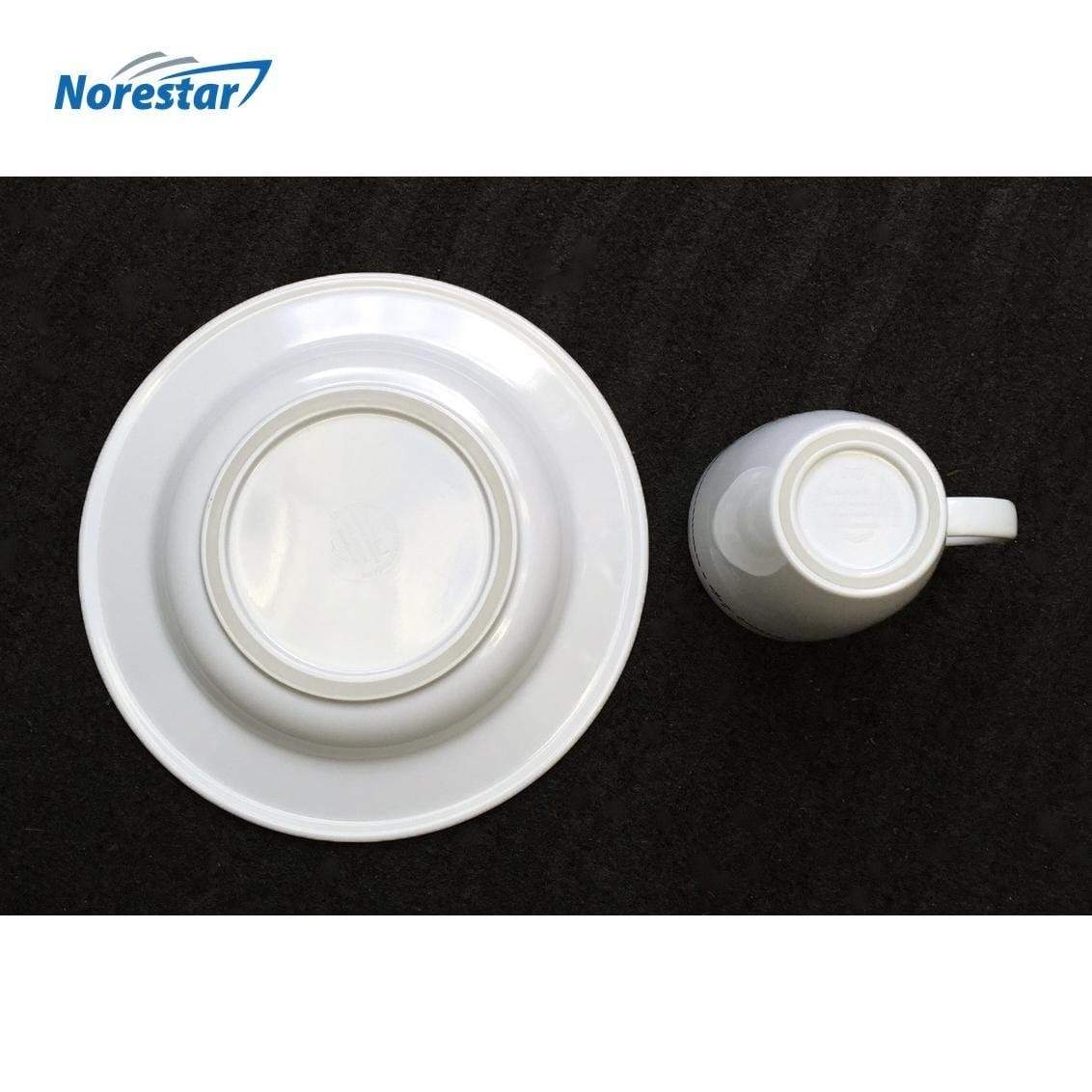 This versatile dinnerware will complement any marine-themed decor, whether on your boat, in your RV, or even in your home kitchen! The set includes (4) Mugs, (4) Plates, (4) Saucers, and (4) Bowls. Note that Melamine is not microwavable.