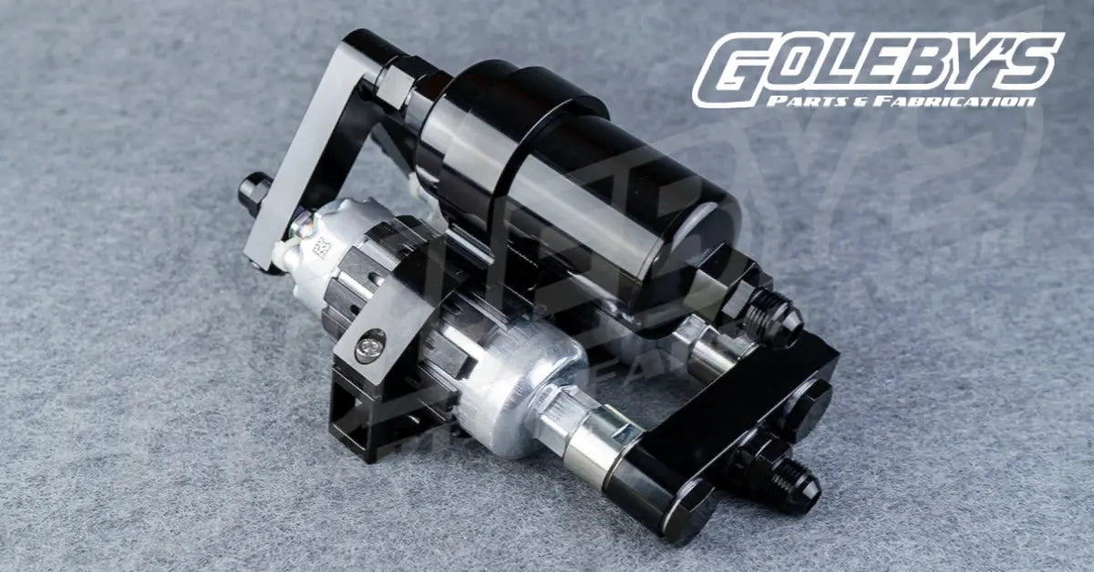 Dual 200 fuel pumps with bracket & serviceable billet fuel filter assembly that is capable of suppling over 500hp worth of fuel and also E85 compatible.