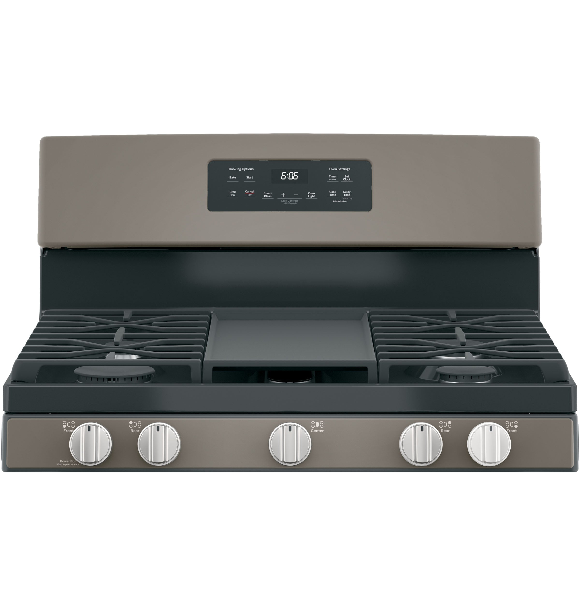 Ignition System Electronic Burner - Right Rear 12,000 BTU Oven Control Features Audible Preheat Signal, Auto Oven Shut-Off, Delay Bake Option, Electronic Clock and Timer, Hi / Low Broil, Oven Control Lock Capability Oven Rack Features 2 Flat Nickel Racks, 6 Rack Positions Burner - Left Rear 5,000 BTU Precise Simmer Oven Cleaning Type Steam Clean Griddle Integrated Non-Stick Product Type Free-Standing Single Oven Cooktop Type Continuous Grates with Griddle Cooktop Burner Grate Material Heavy Cast Iron Fuel Type Natural Gas (factory set) Burner - Center 10,000 BTU Oval Interior Oven Light 1 Incandescent Control Location Front Cooktop Burner Grate Features Continuous Grates Control Type Electronic Touch Burner - Left Front 15,000 BTU Drawer Type Broiler Sabbath Mode Yes Cooking Technology Traditional Configuration Range with Broiler Drawer OU Certified Embedded OU/CRC Enhanced Shabbos Mode Cooktop Burner Type Sealed Burner - Right Front 9,500 BTU Cooktop Surface Edge-to-Edge, Gray, One-Piece Upswept, Porcelain-Enamel APPEARANCE