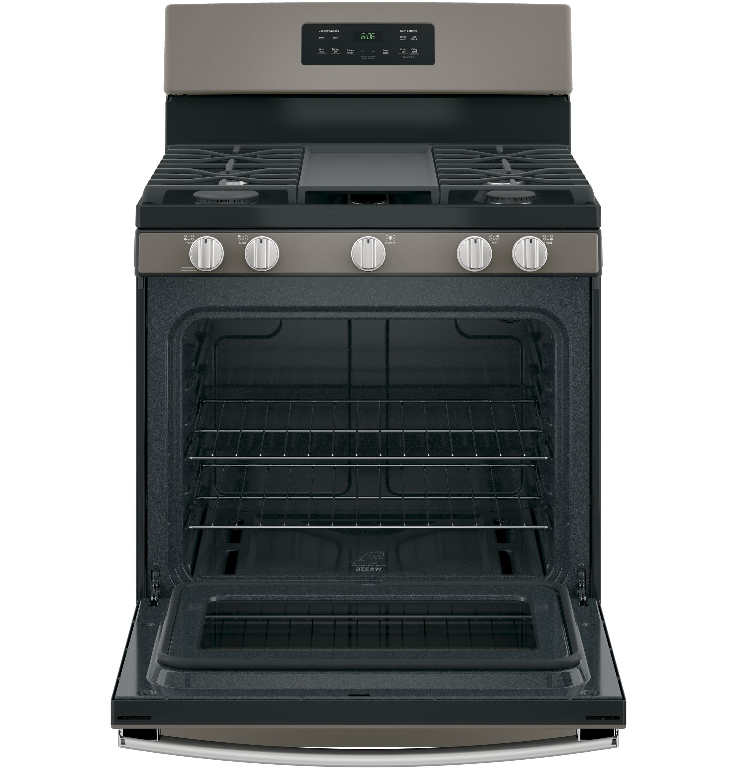 Cooktop Burner Grate Color Matte Black Handle Designer Style Oven Door Features Big View Oven Window Control Knobs Stainless Steel Appearance Color Appearance Fingerprint Resistant Slate WARRANTY