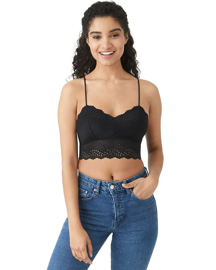 - Open neckline featuring a stretch lace with scalloped edge that's wardrobe friendly